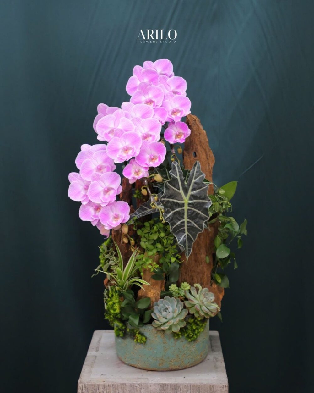 CHẬU LAN HỒ ĐIỆP HỒNG TÍM – THẾ GỖ LŨA PHONG THỦY SANG TRỌNG L21