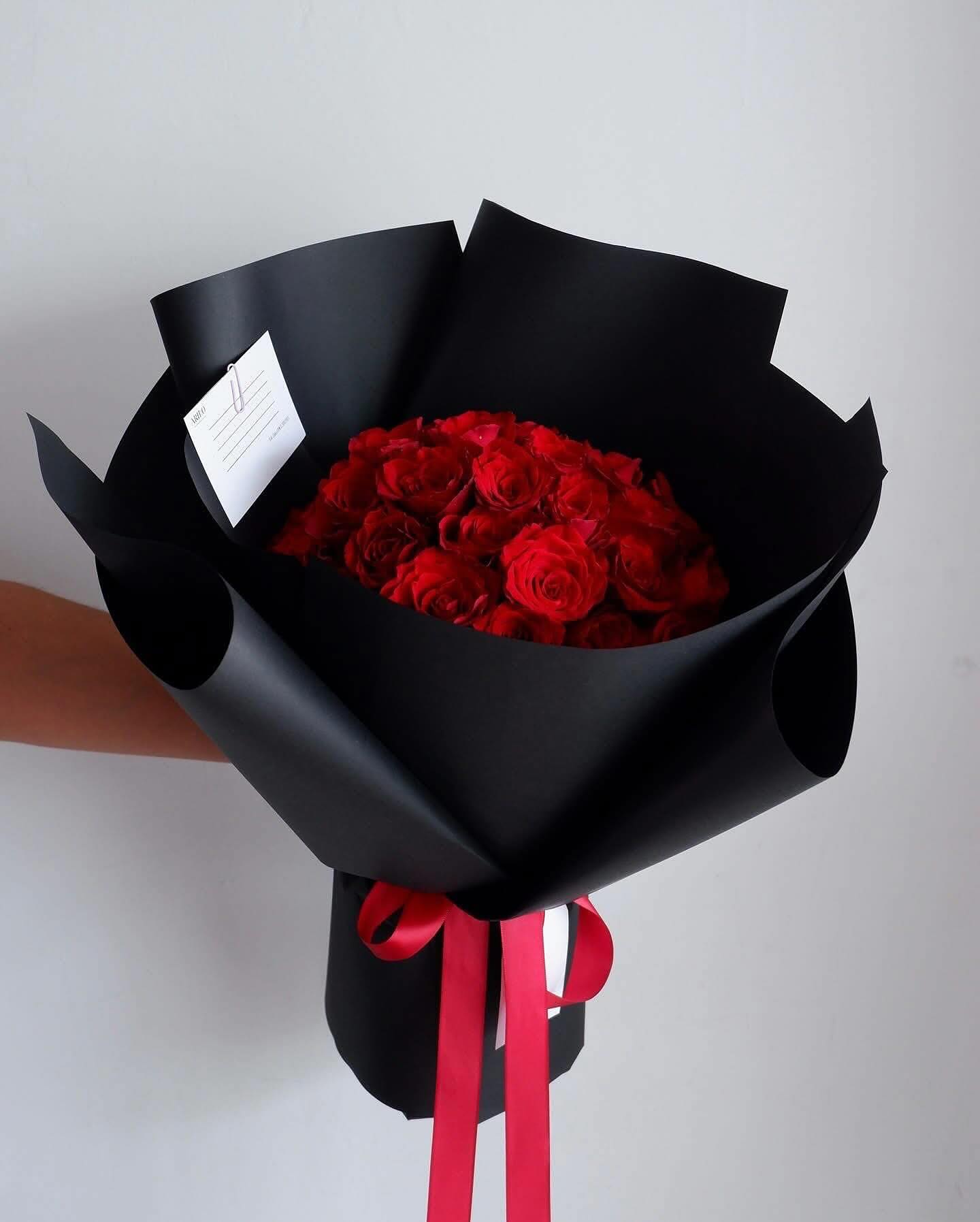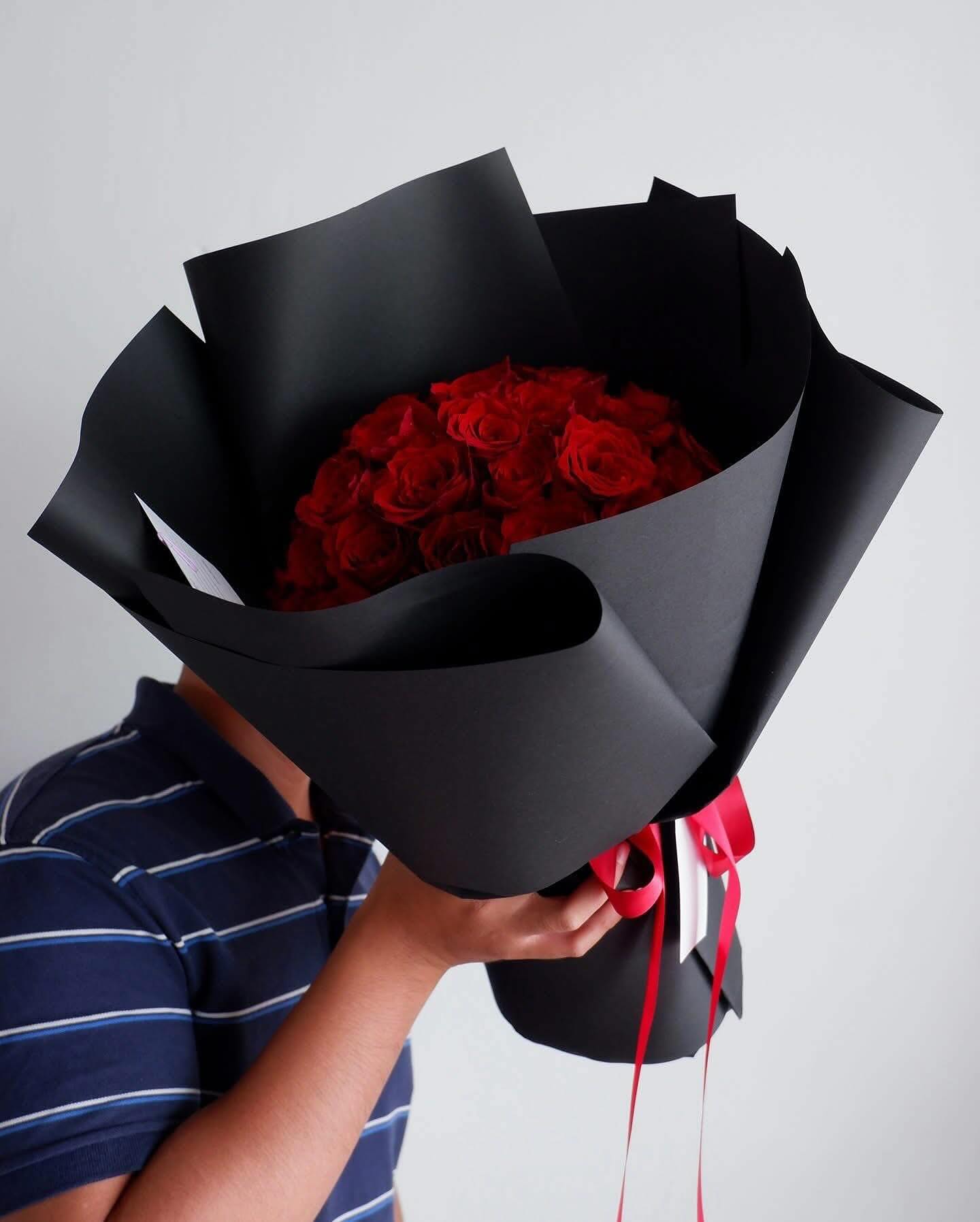 Dưới bàn tay khéo léo của nghệ nhân Arilo, bó hoa không chỉ là sự kết hợp của những đóa hoa mà là một tác phẩm nghệ thuật. Chúng tôi sử dụng giấy gói Hàn Quốc cao cấp (như giấy mờ, giấy lụa) với tông màu trang nhã (ví dụ: kem, xám khói, đen tuyền) làm nổi bật vẻ đẹp kiêu sa của hoa hồng. Điểm nhấn là chiếc nơ lụa mềm mại được thắt thủ công, tạo nên một tổng thể sang trọng và hiện đại.