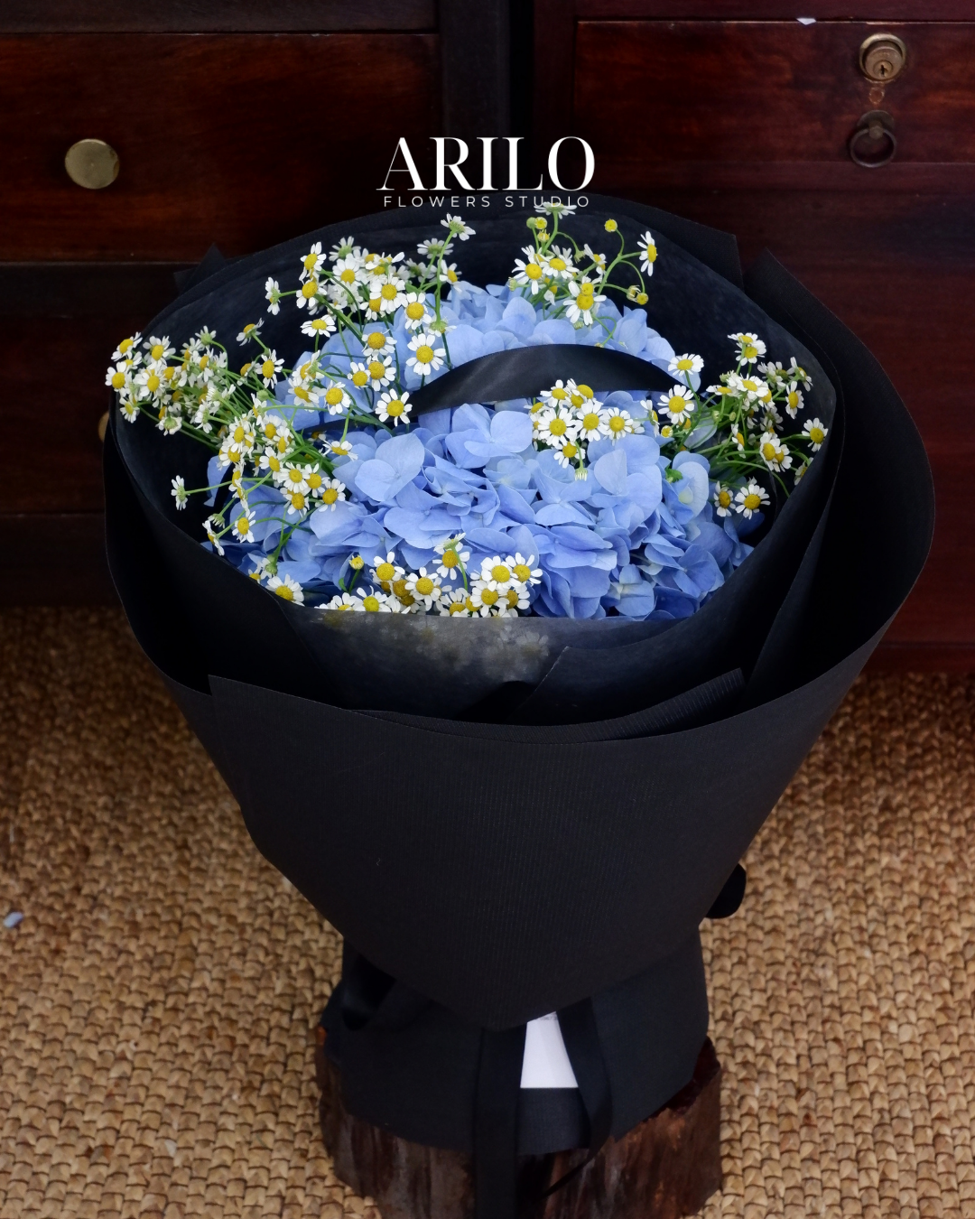 Dưới bàn tay khéo léo của nghệ nhân Arilo, bó hoa không chỉ là sự kết hợp của những đóa hoa mà là một tác phẩm nghệ thuật. Chúng tôi sử dụng giấy gói Hàn Quốc cao cấp (như giấy mờ, giấy lụa) với tông màu trang nhã (ví dụ: kem, xám khói, đen tuyền) làm nổi bật vẻ đẹp kiêu sa của hoa hồng. Điểm nhấn là chiếc nơ lụa mềm mại được thắt thủ công, tạo nên một tổng thể sang trọng và hiện đại.