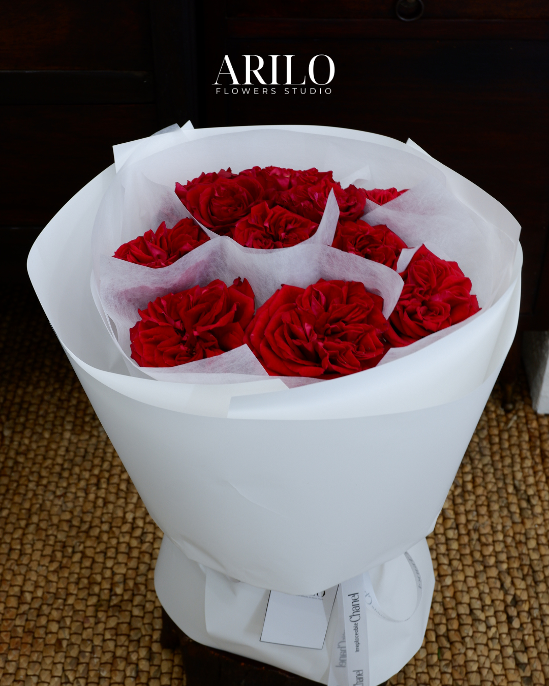 Dưới bàn tay khéo léo của nghệ nhân Arilo, bó hoa không chỉ là sự kết hợp của những đóa hoa mà là một tác phẩm nghệ thuật. Chúng tôi sử dụng giấy gói Hàn Quốc cao cấp (như giấy mờ, giấy lụa) với tông màu trang nhã (ví dụ: kem, xám khói, đen tuyền) làm nổi bật vẻ đẹp kiêu sa của hoa hồng. Điểm nhấn là chiếc nơ lụa mềm mại được thắt thủ công, tạo nên một tổng thể sang trọng và hiện đại.