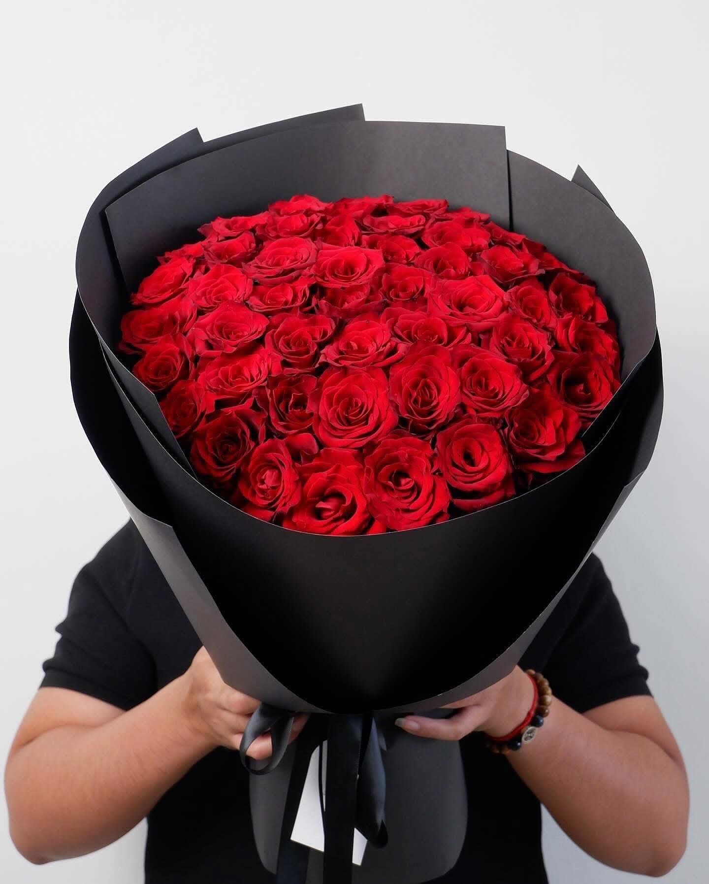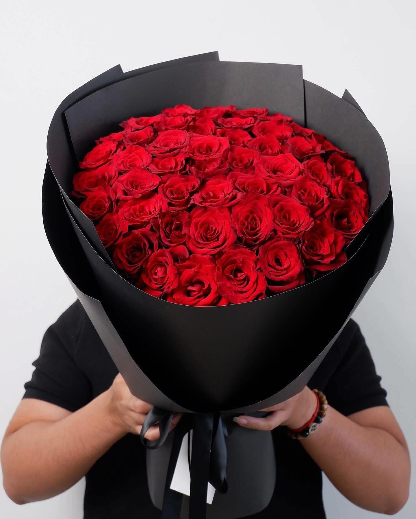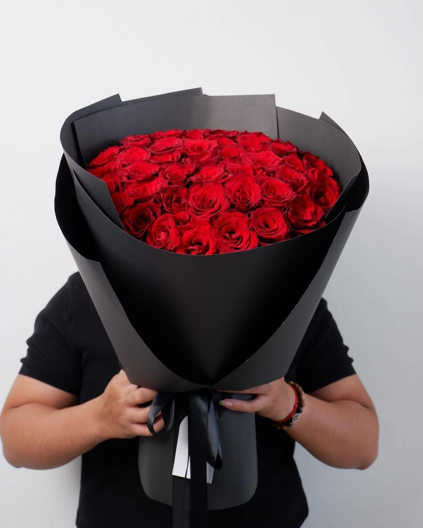 Dưới bàn tay khéo léo của nghệ nhân Arilo, bó hoa không chỉ là sự kết hợp của những đóa hoa mà là một tác phẩm nghệ thuật. Chúng tôi sử dụng giấy gói Hàn Quốc cao cấp (như giấy mờ, giấy lụa) với tông màu trang nhã (ví dụ: kem, xám khói, đen tuyền) làm nổi bật vẻ đẹp kiêu sa của hoa hồng. Điểm nhấn là chiếc nơ lụa mềm mại được thắt thủ công, tạo nên một tổng thể sang trọng và hiện đại.