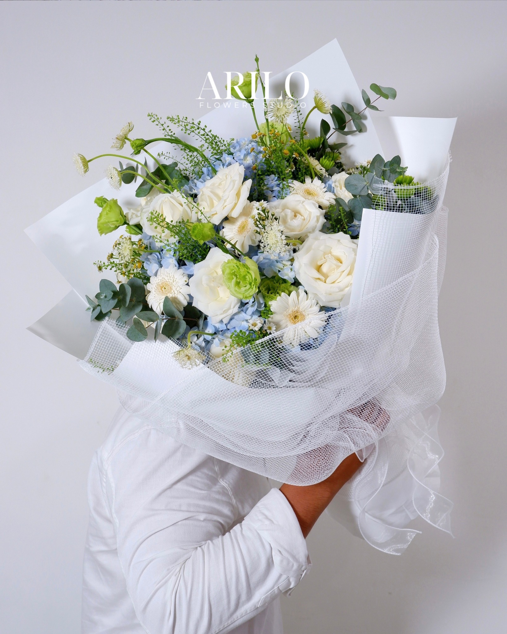 Có những tình cảm không cần nói thành lời, chỉ cần một bó hoa tặng mẹ được chọn đúng cảm xúc là đủ để mẹ hiểu rằng con luôn ghi nhớ và biết ơn. Thiết kế hoa xanh – trắng này được tạo nên từ tinh thần đó: dịu dàng, tinh tế và bền bỉ như chính tình yêu của mẹ.