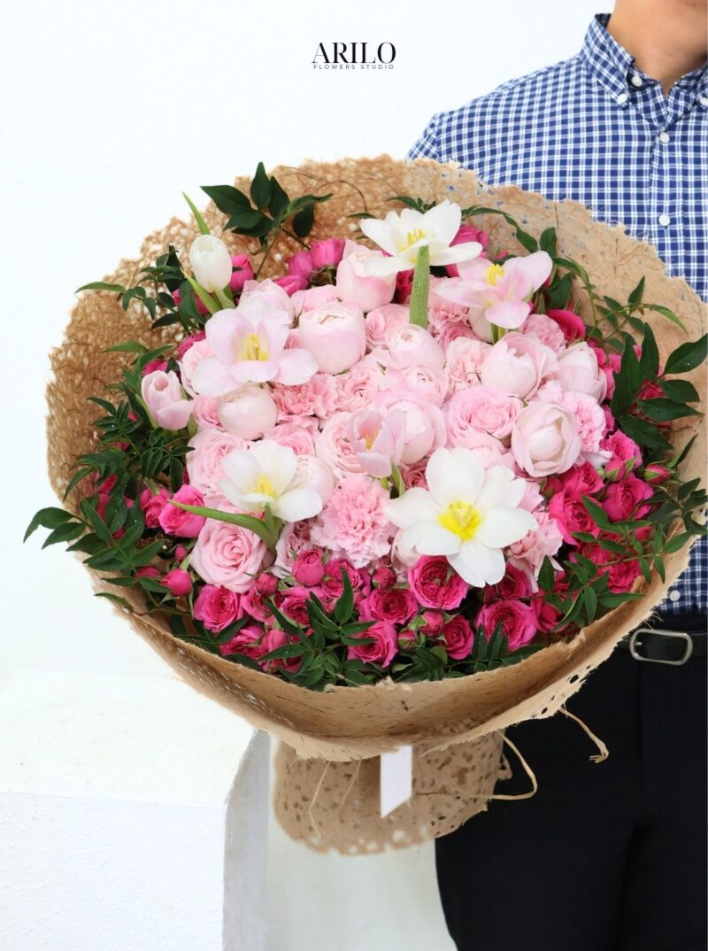 Arilo tin rằng, một bó hoa đẹp là khi nó giúp người tặng nói ra lời yêu theo cách phù hợp nhất với trái tim mình. Và với bó hoa tỏ tình hồng Ohara – tulip – jasmin, Arilo mong được đồng hành cùng bạn trong khoảnh khắc bắt đầu một câu chuyện yêu thật dịu dàng và đáng nhớ.