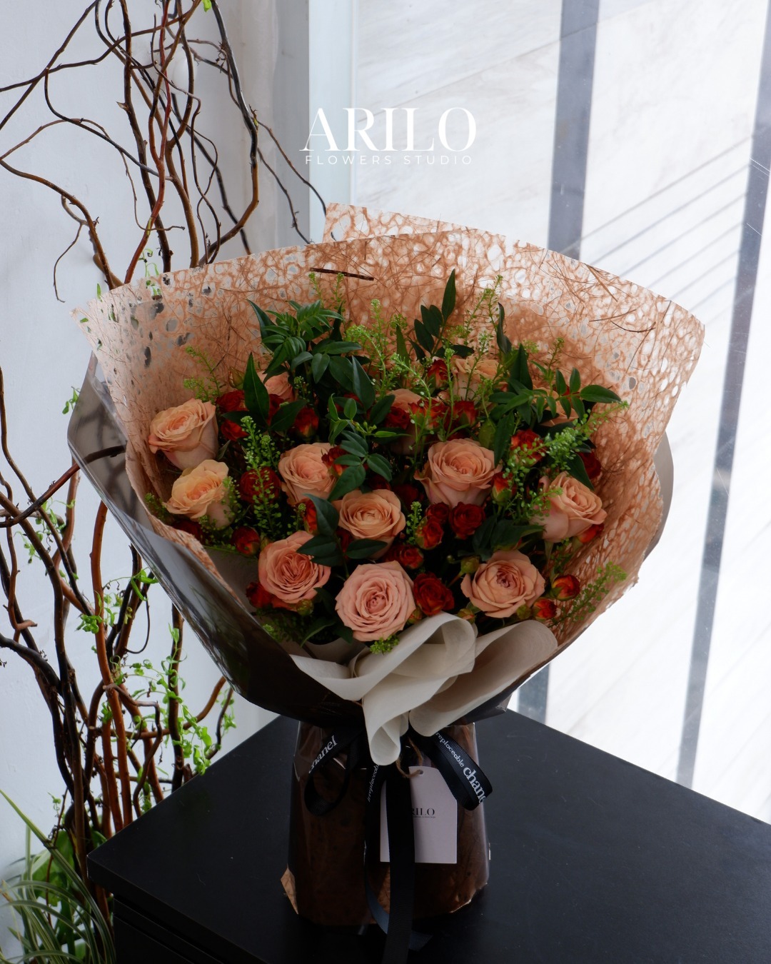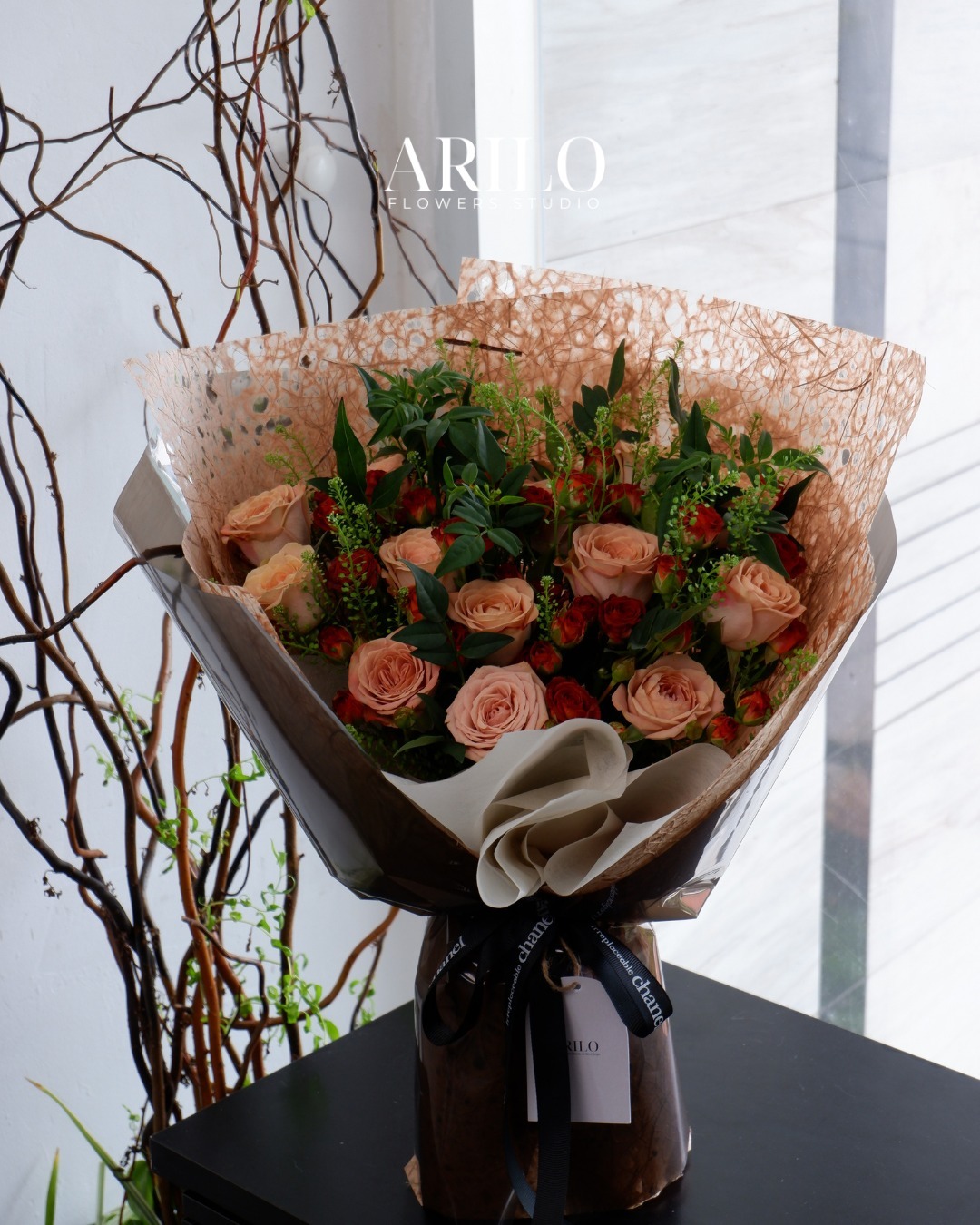 Có những mối quan hệ không còn cần đến những gam màu rực rỡ để chứng minh tình yêu. Chỉ cần một bó hoa đủ tinh tế, đủ chiều sâu là đã nói lên sự gắn bó và trân trọng. Bó hoa hồng chùm cafe kết hợp hồng Capuchino này được Arilo thiết kế dành cho những cảm xúc như thế – ấm áp, điềm tĩnh và rất thật.