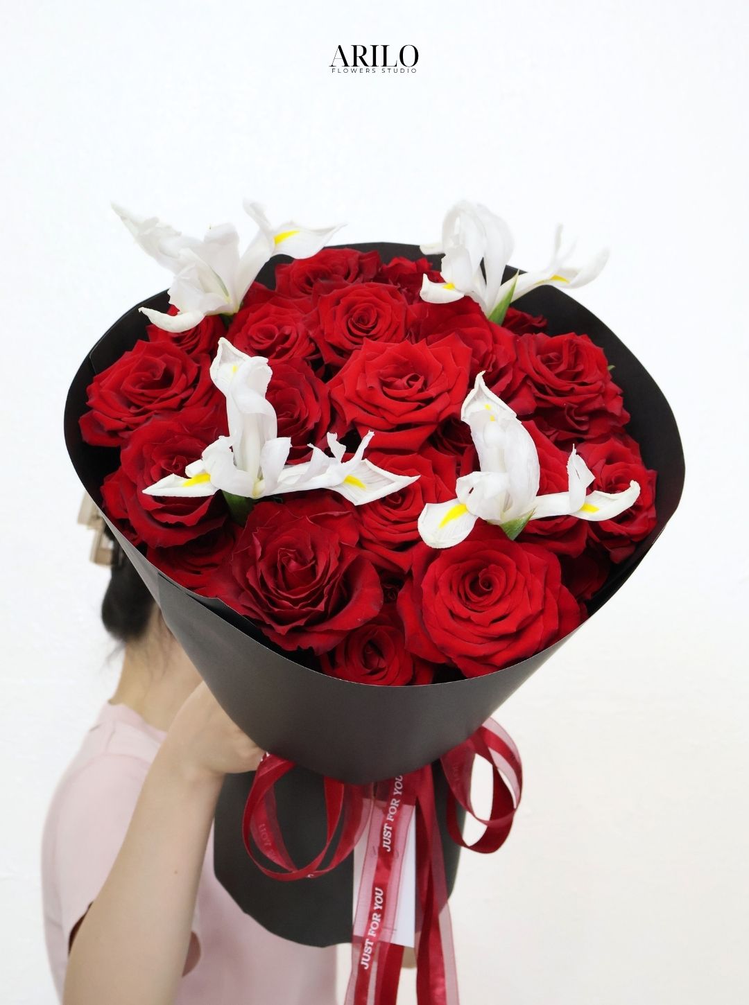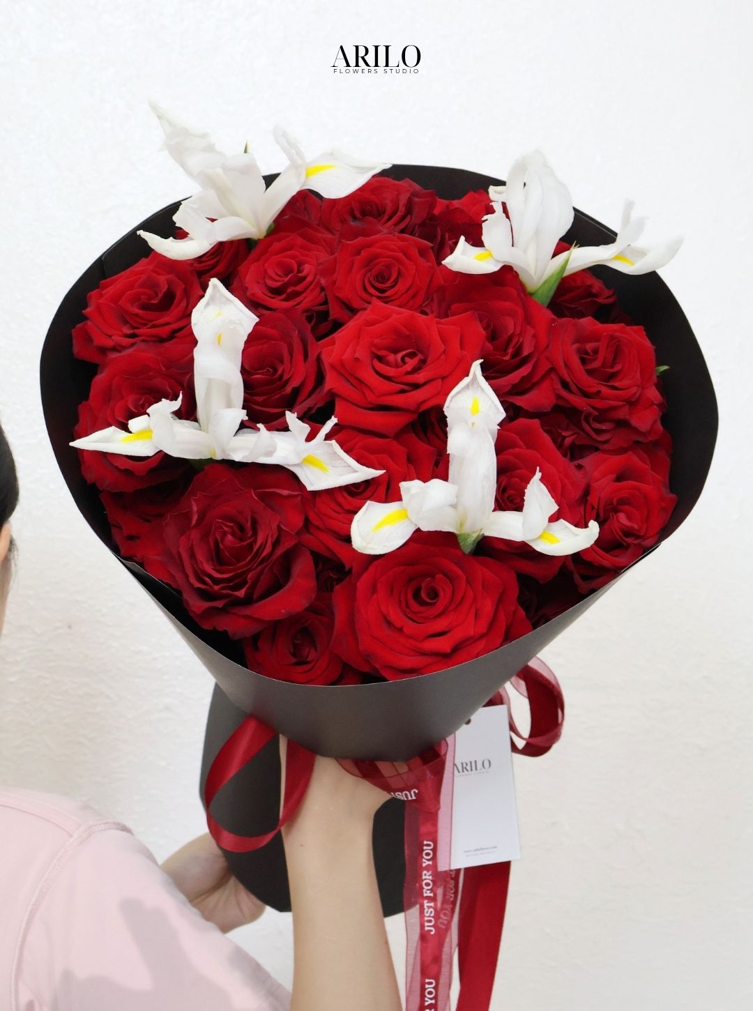 Để sở hữu một bó hoa hồng đỏ mix hoa diên vĩ đẹp và chất lượng, việc lựa chọn nơi đặt hoa là yếu tố quan trọng. Shop hoa tươi sài gòn Arilo Flower Studio luôn chú trọng đến từng chi tiết, từ việc chọn hoa đến cách thiết kế.