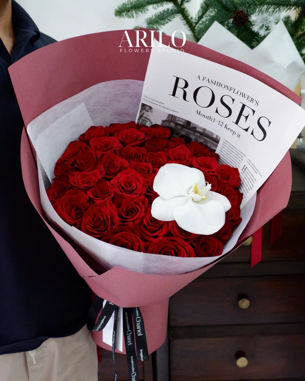Hồng Ecuador được trồng ở vùng cao nguyên có khí hậu ổn định, nhiệt độ mát mẻ quanh năm, vì vậy cánh hoa dày, bông to và form nở cực kỳ chuẩn. Riêng với hồng Ecuador đỏ, sắc đỏ không rực gắt mà trầm, sâu, càng nhìn càng thấy sang và vững. Đây là kiểu màu đỏ của sự trưởng thành, khác hoàn toàn với sự bồng bột hay ngọt ngào nhất thời. Chính vì thế, rất nhiều khách của Arilo Flower Studio lựa chọn dòng hoa này cho những cột mốc quan trọng trong tình yêu.