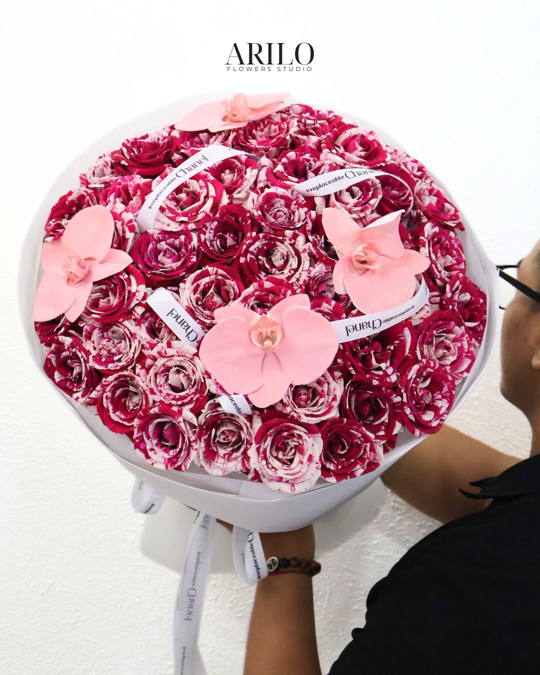 Bó hoa hồng kẹo ngọt phối lan hồ điệp là thiết kế đầy ấn tượng và tinh tế tại Arilo Flower Studio – shop hoa tươi quận 3. Những bông hồng kẹo ngọt với sắc hồng đậm pha vân trắng độc đáo được xếp khít form tròn đầy đặn, xen kẽ là những cánh lan hồ điệp hồng mềm mại, mang đến tổng thể vừa ngọt ngào vừa sang trọng. Đây là lựa chọn hoàn hảo cho những ai đang tìm một bó hoa sinh nhật đẹp, hoặc muốn gửi gắm cảm xúc chân thành qua hoa tỏ tình và hoa cầu hôn thật lãng mạn và khác biệt.