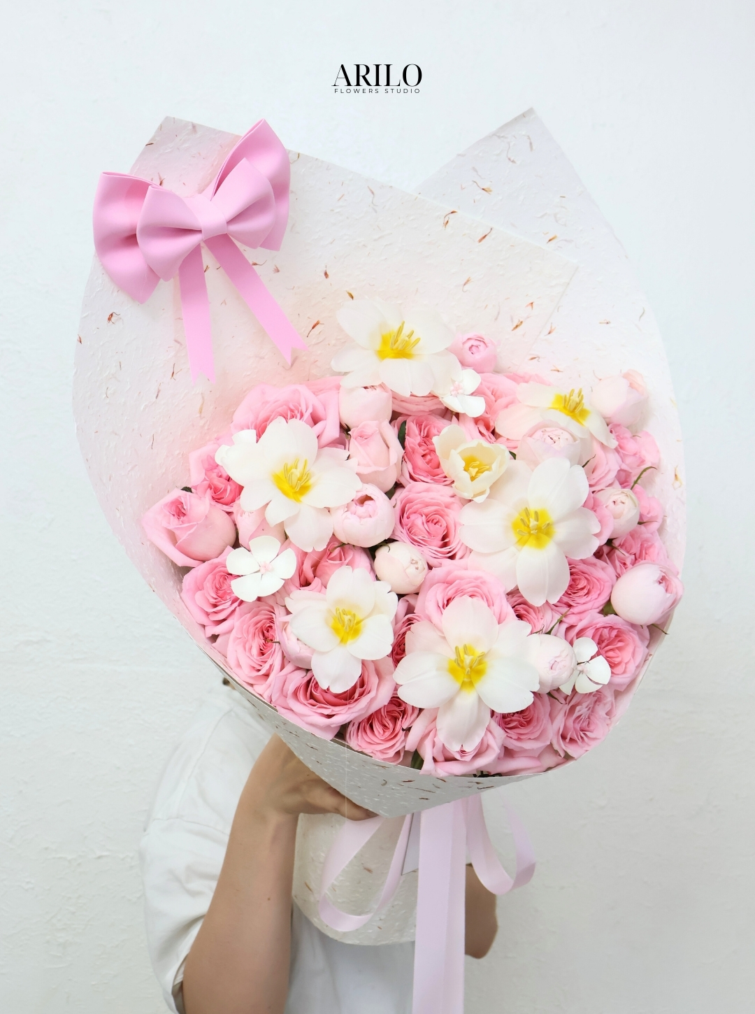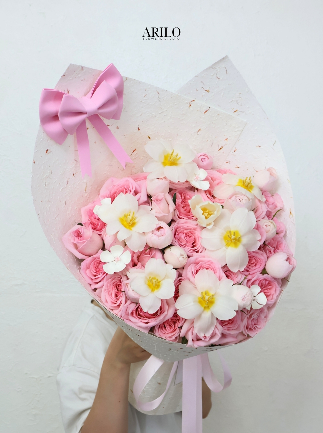 Tại Arilo Flower Studio Hồ Chí Minh, từ bó hoa tỏ tình, bó hoa cầu hôn đến hoa tặng người yêu Valentine, mọi sản phẩm đều mang phong cách riêng, không trùng lặp và không đại trà.