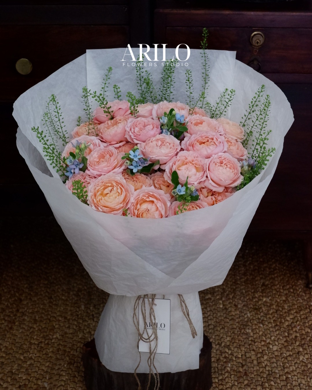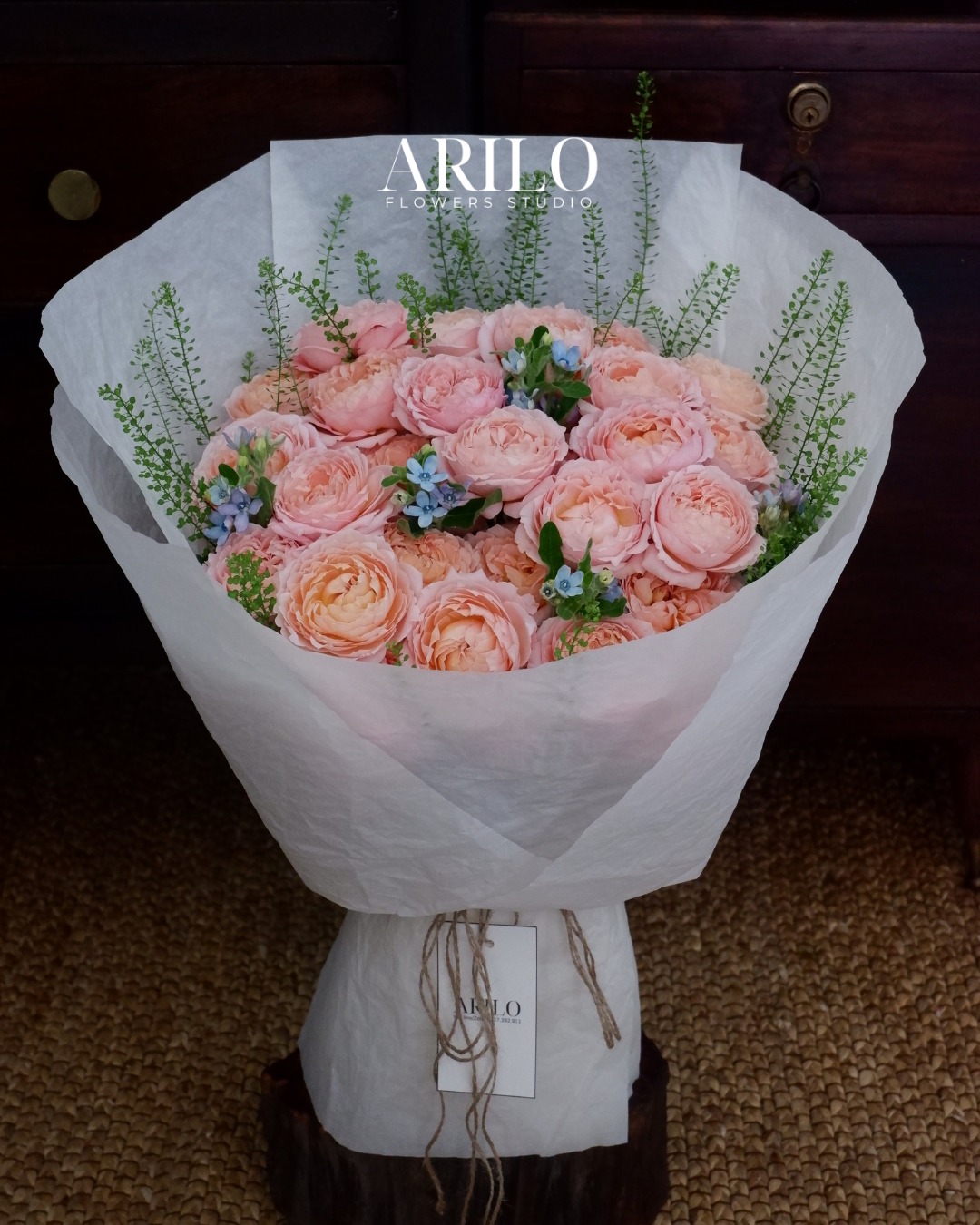 Lớp giấy gói trắng tinh tế cùng dây buộc mộc mạc giúp tôn lên vẻ đẹp tự nhiên của hoa, mang lại cảm giác gần gũi nhưng vẫn giữ được nét sang trọng đặc trưng của Arilo. Đây là kiểu bó hoa phù hợp để tặng mẹ trong nhiều dịp: sinh nhật, Ngày của Mẹ, lễ gia đình, hay đơn giản là một ngày bạn muốn nói “Con thương mẹ”.