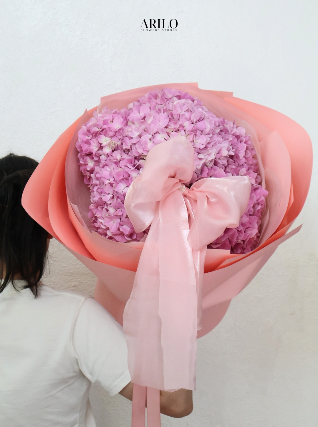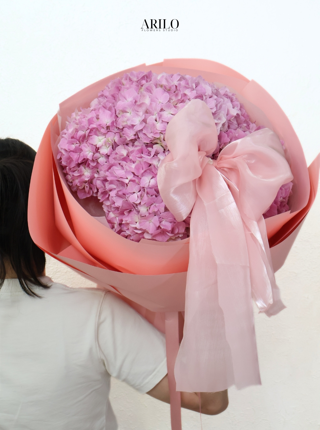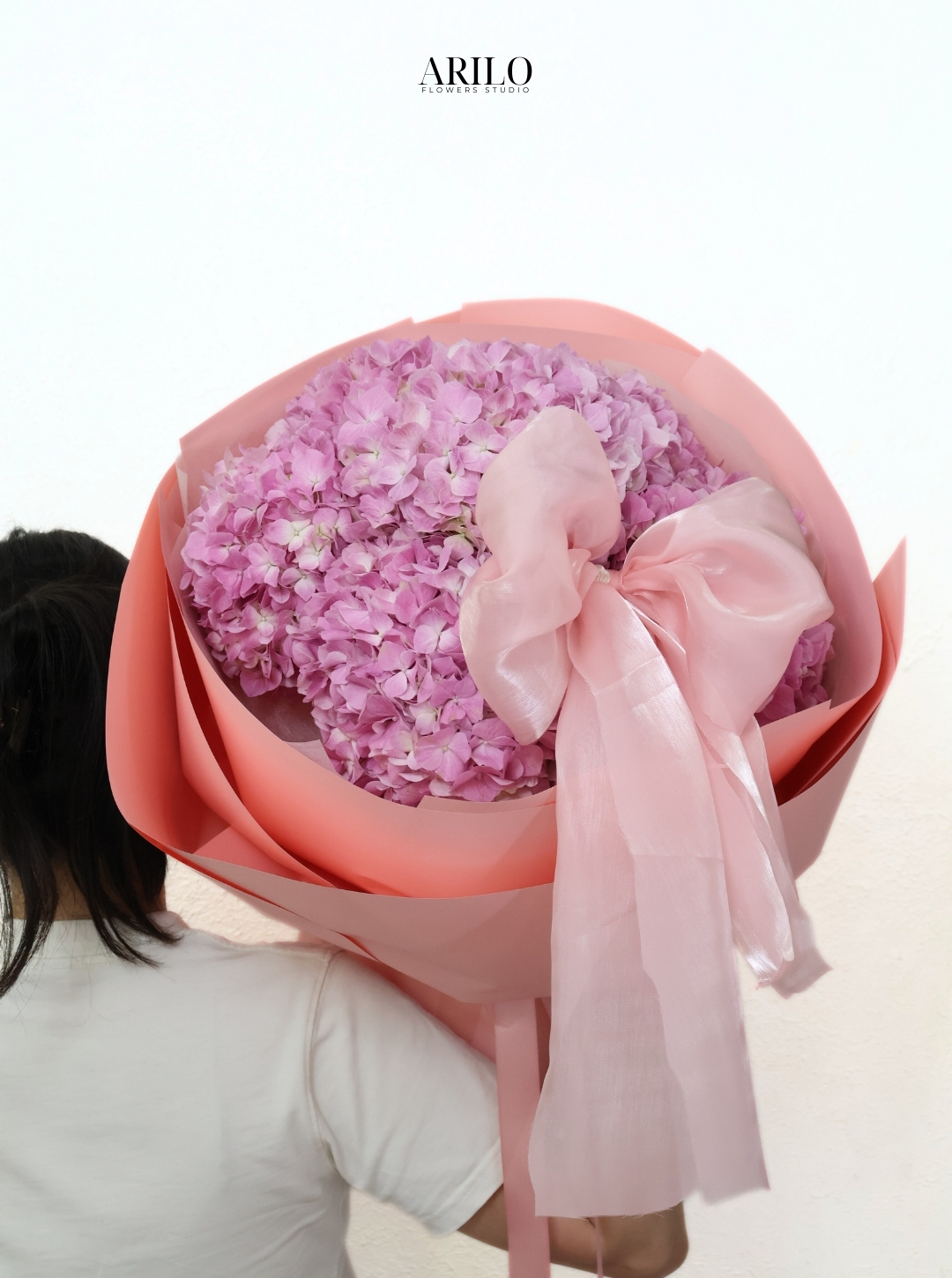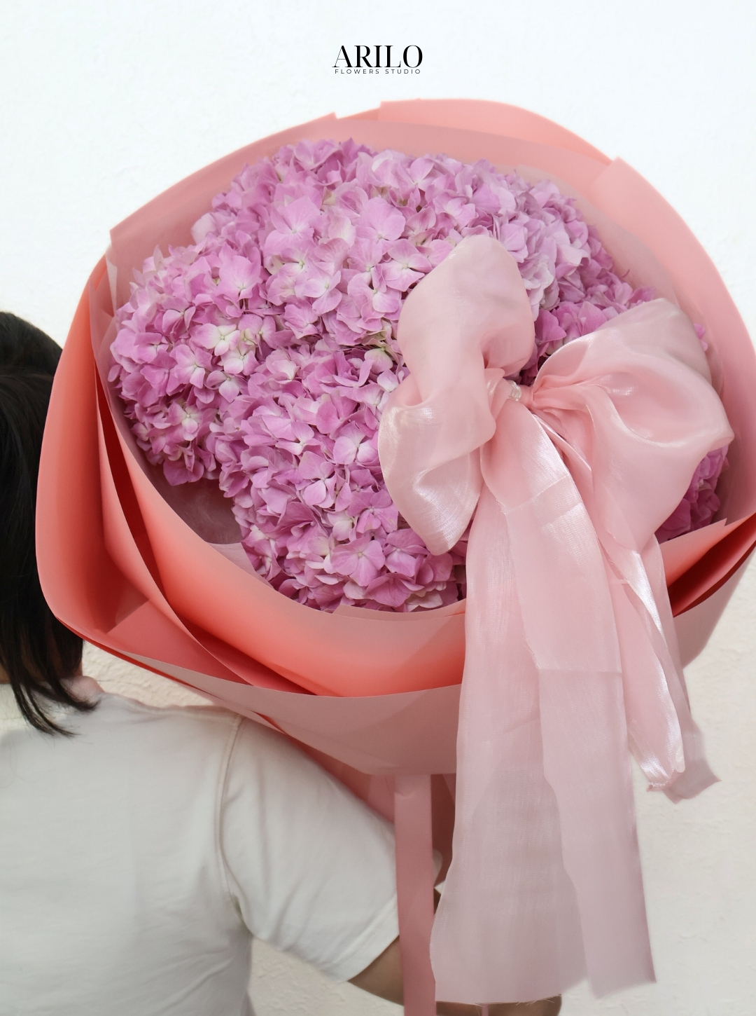 Sắc hồng dịu dàng của tú cầu rất phù hợp để bày tỏ tình cảm. Bó hoa mang đến cảm giác nhẹ nhàng và tinh tế, giúp lời tỏ tình trở nên chân thành hơn.