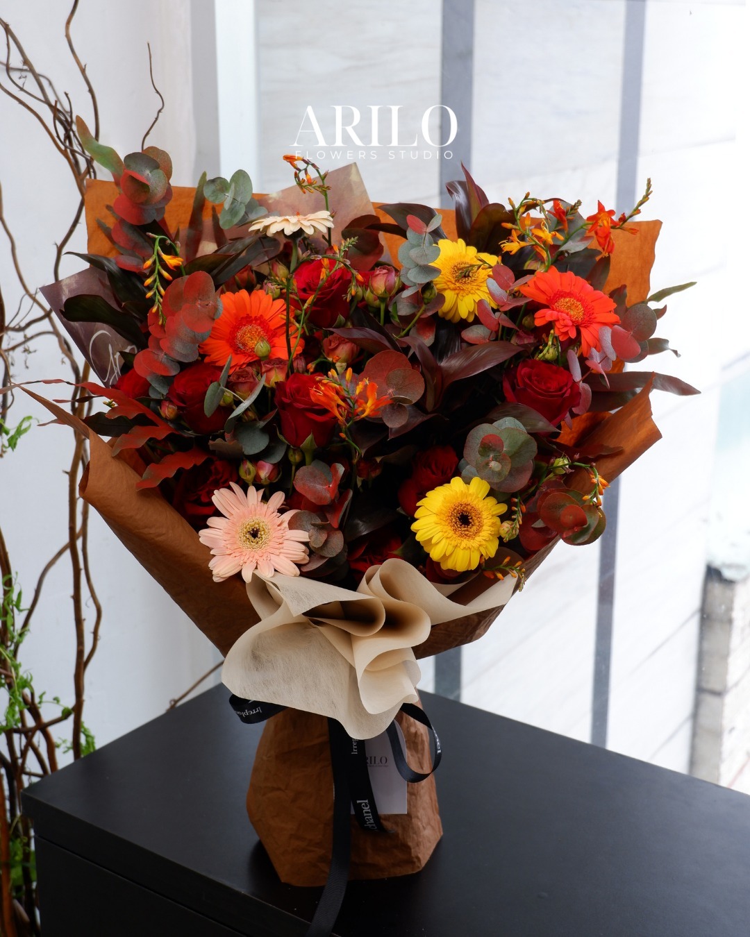 Tại Arilo Flower Studio Hồ Chí Minh, khách hàng có thể tìm thấy đa dạng mẫu từ bó hoa tỏ tình, bó hoa cầu hôn, bó hoa sinh nhật đến hoa tặng người yêu Valentine. Đội ngũ thiết kế luôn sẵn sàng tư vấn tone màu và phong cách phù hợp với từng dịp.