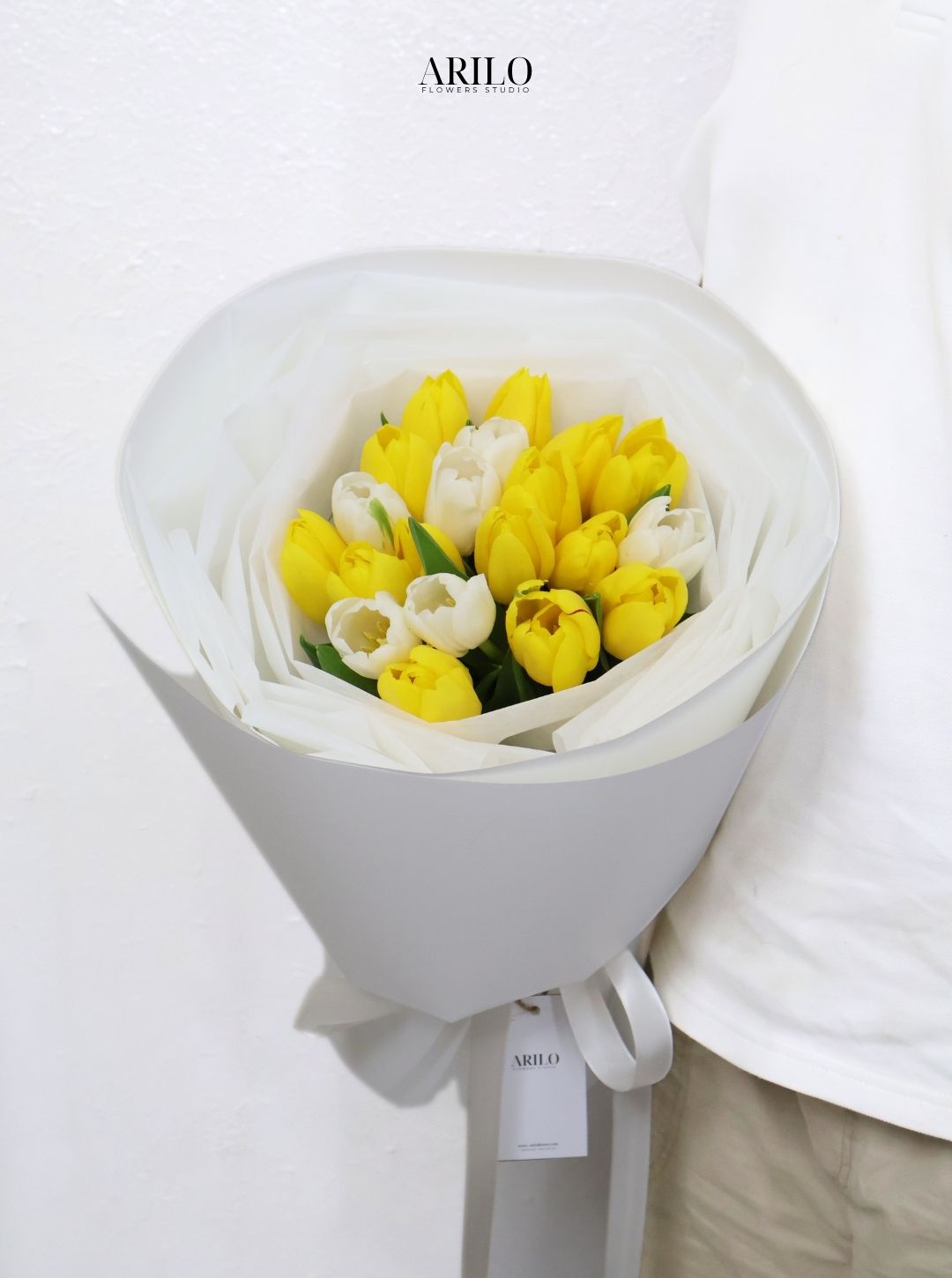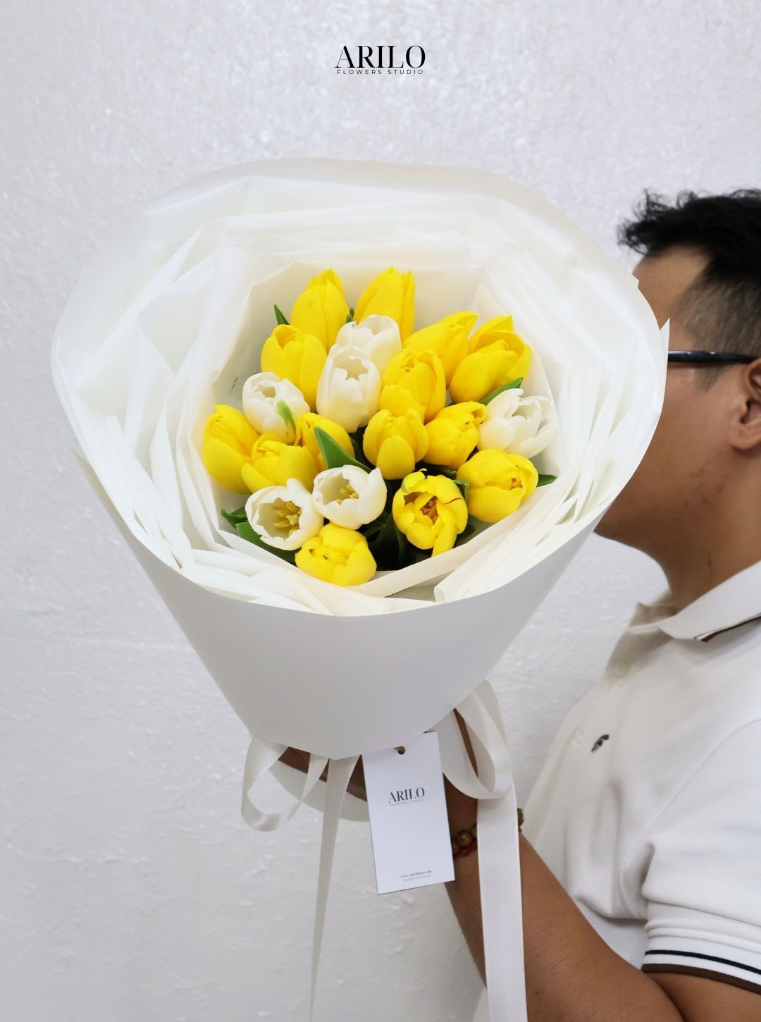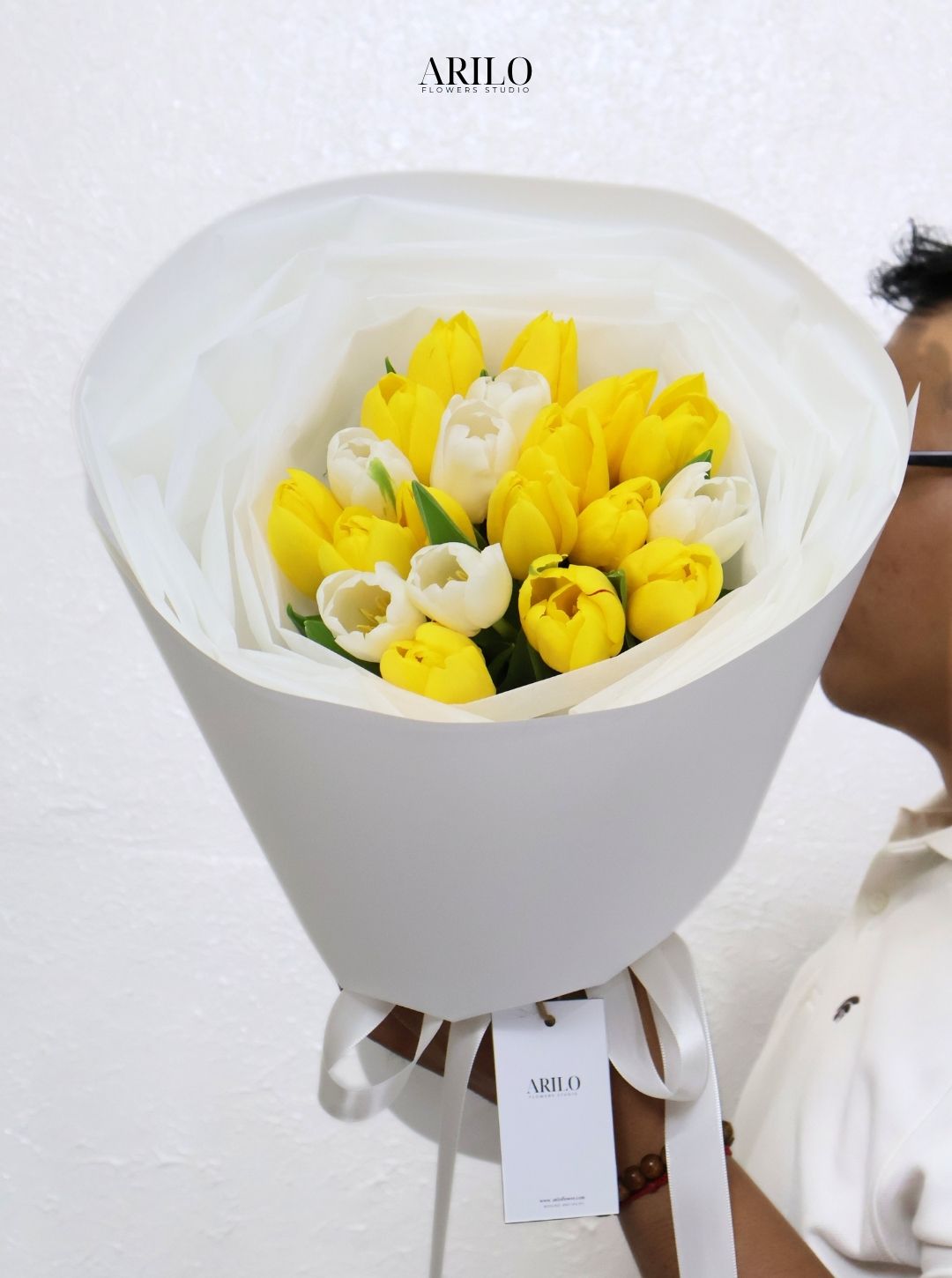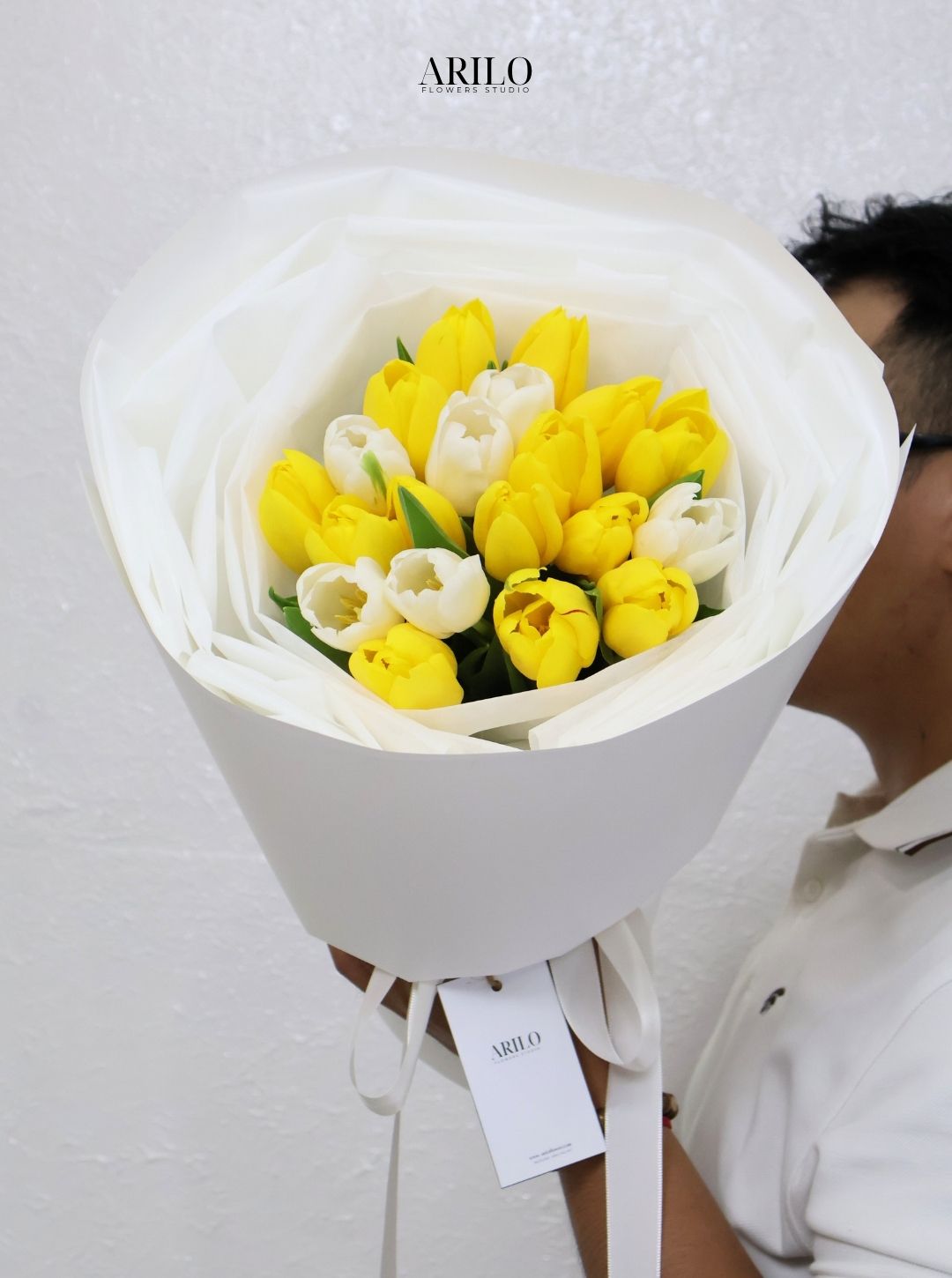 Với vẻ đẹp nhẹ nhàng và ý nghĩa sâu sắc, bó hoa tulip vàng trắng giúp bạn thể hiện tình cảm một cách chân thành. Đây là lựa chọn lý tưởng cho những ai muốn tạo nên một khoảnh khắc đáng nhớ mà không cần quá phô trương.
