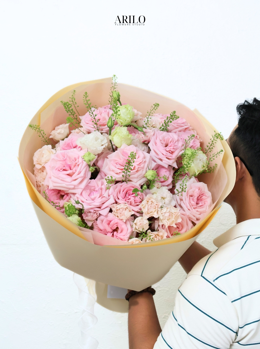 Tại Arilo, mỗi bó hoa đều được thiết kế thủ công bởi những florist giàu kinh nghiệm. Hoa được tuyển chọn kỹ lưỡng để đảm bảo độ tươi và màu sắc đẹp nhất khi đến tay khách hàng.