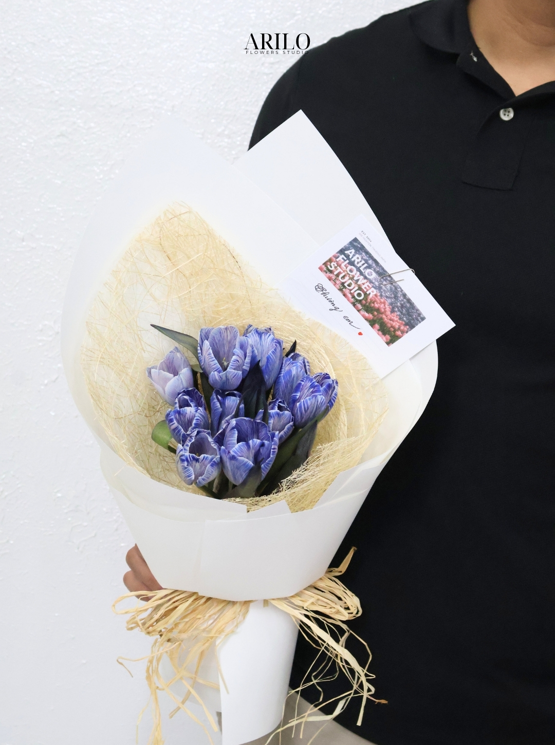 Một bó hoa tulip xanh mang vẻ đẹp lạ mắt và đầy cuốn hút, là lựa chọn hoàn hảo cho những ai muốn tạo dấu ấn riêng trong cách thể hiện tình cảm. Không giống những gam màu truyền thống, sắc xanh của tulip gợi lên cảm giác bình yên, sâu lắng nhưng vẫn rất tinh tế. Bó hoa được gói trong lớp giấy trắng kết hợp cùng chi tiết trang trí tự nhiên, tạo nên tổng thể hài hòa và thanh lịch. Đây là một trong những mẫu bó hoa tỏ tình giá tốt dành cho những ai yêu thích sự khác biệt nhưng vẫn giữ được nét nhẹ nhàng.