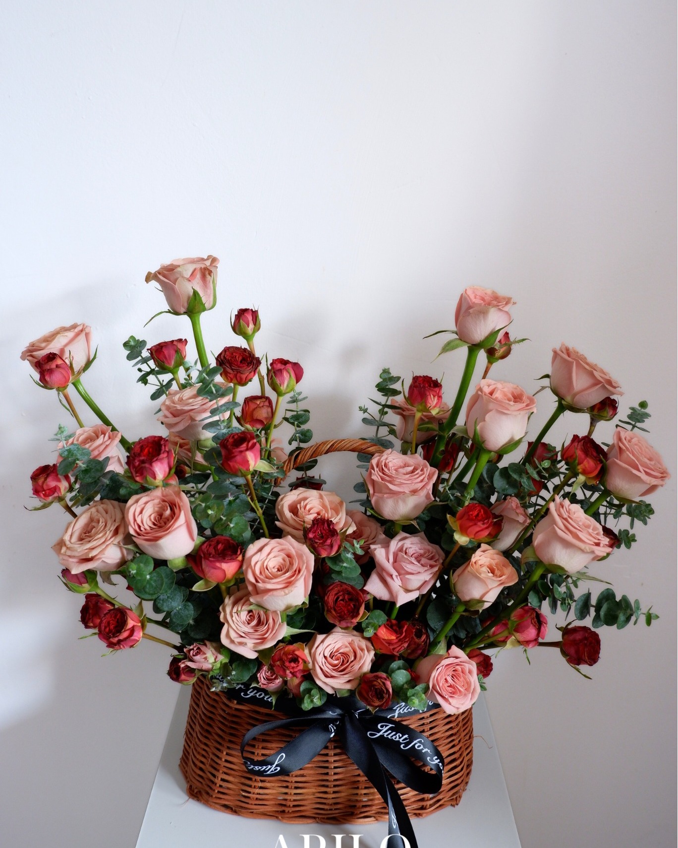 Dưới bàn tay khéo léo của nghệ nhân Arilo, bó hoa không chỉ là sự kết hợp của những đóa hoa mà là một tác phẩm nghệ thuật. Chúng tôi sử dụng giấy gói Hàn Quốc cao cấp (như giấy mờ, giấy lụa) với tông màu trang nhã (ví dụ: kem, xám khói, đen tuyền) làm nổi bật vẻ đẹp kiêu sa của hoa hồng. Điểm nhấn là chiếc nơ lụa mềm mại được thắt thủ công, tạo nên một tổng thể sang trọng và hiện đại.