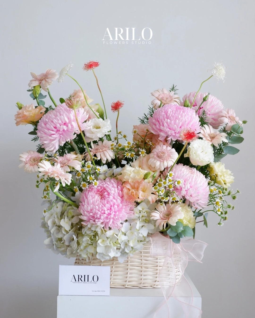 Đây là lựa chọn phù hợp cho giỏ hoa khai trương theo phong cách thanh lịch, nhẹ nhàng, đặc biệt thích hợp với cửa hàng, spa, văn phòng hoặc không gian cần sự tinh tế. Tại Tiệm hoa tươi quận 3 – Arilo Flower Studio, mỗi giỏ hoa đều được thiết kế thủ công, lựa chọn hoa tươi mới mỗi ngày và phối màu kỹ lưỡng để đảm bảo độ bền cũng như tính thẩm mỹ cao. Là một Shop hoa tươi Sài Gòn được nhiều khách hàng tin chọn, Arilo luôn mang đến những mẫu giỏ hoa chúc mừng giá tốt, vừa đẹp mắt vừa trọn vẹn ý nghĩa, thay lời chúc khởi đầu suôn sẻ và nhiều may mắn.