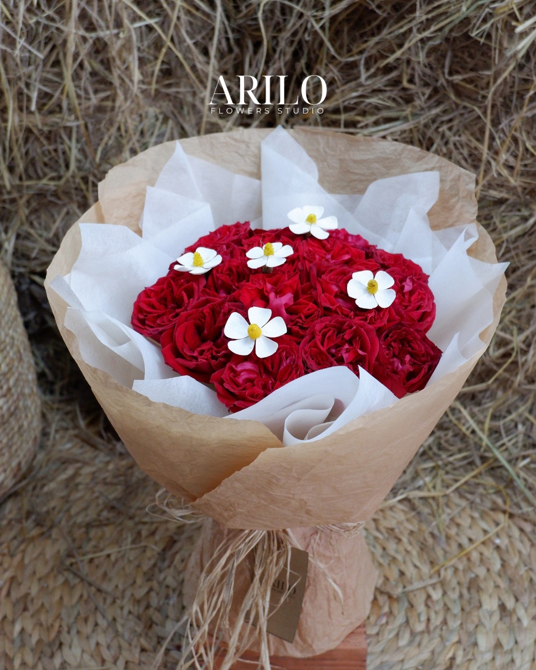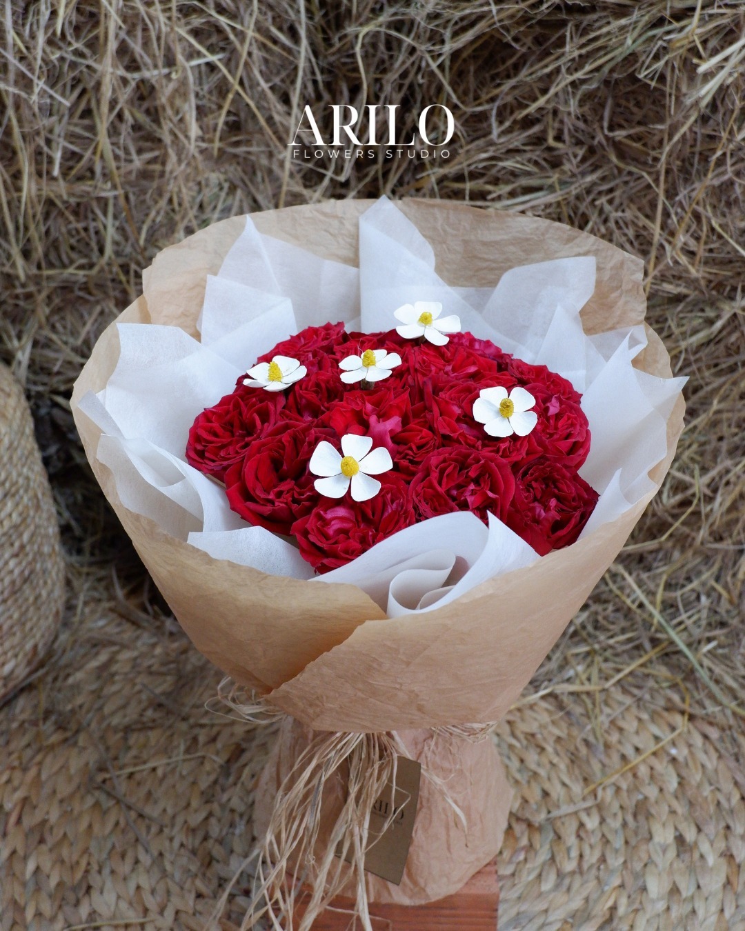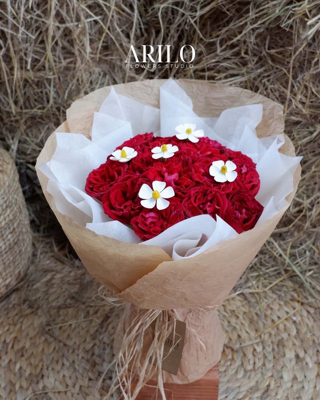 Tại Shop hoa tươi Sài Gòn – Arilo Flower Studio, mỗi bó hoa không chỉ là một sản phẩm, mà là một câu chuyện cảm xúc được kể bằng hoa. Arilo lựa chọn hoa hồng Ohara đỏ đạt độ nở chuẩn, cánh hoa đều, màu sắc tươi và giữ form lâu. Hoa cúc gỗ được tuyển chọn kỹ để đảm bảo độ bền và sự tinh tế trong từng chi tiết nhỏ.