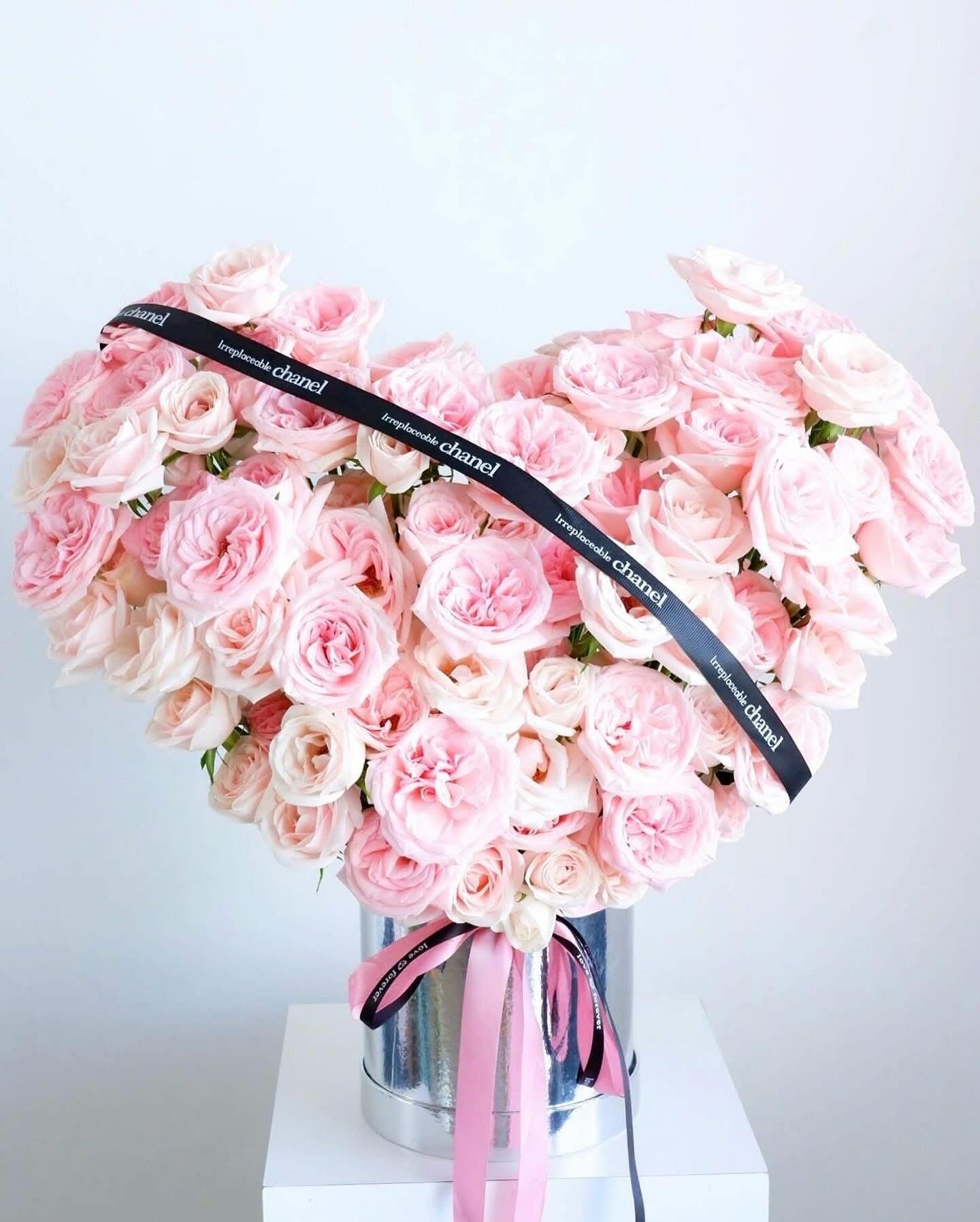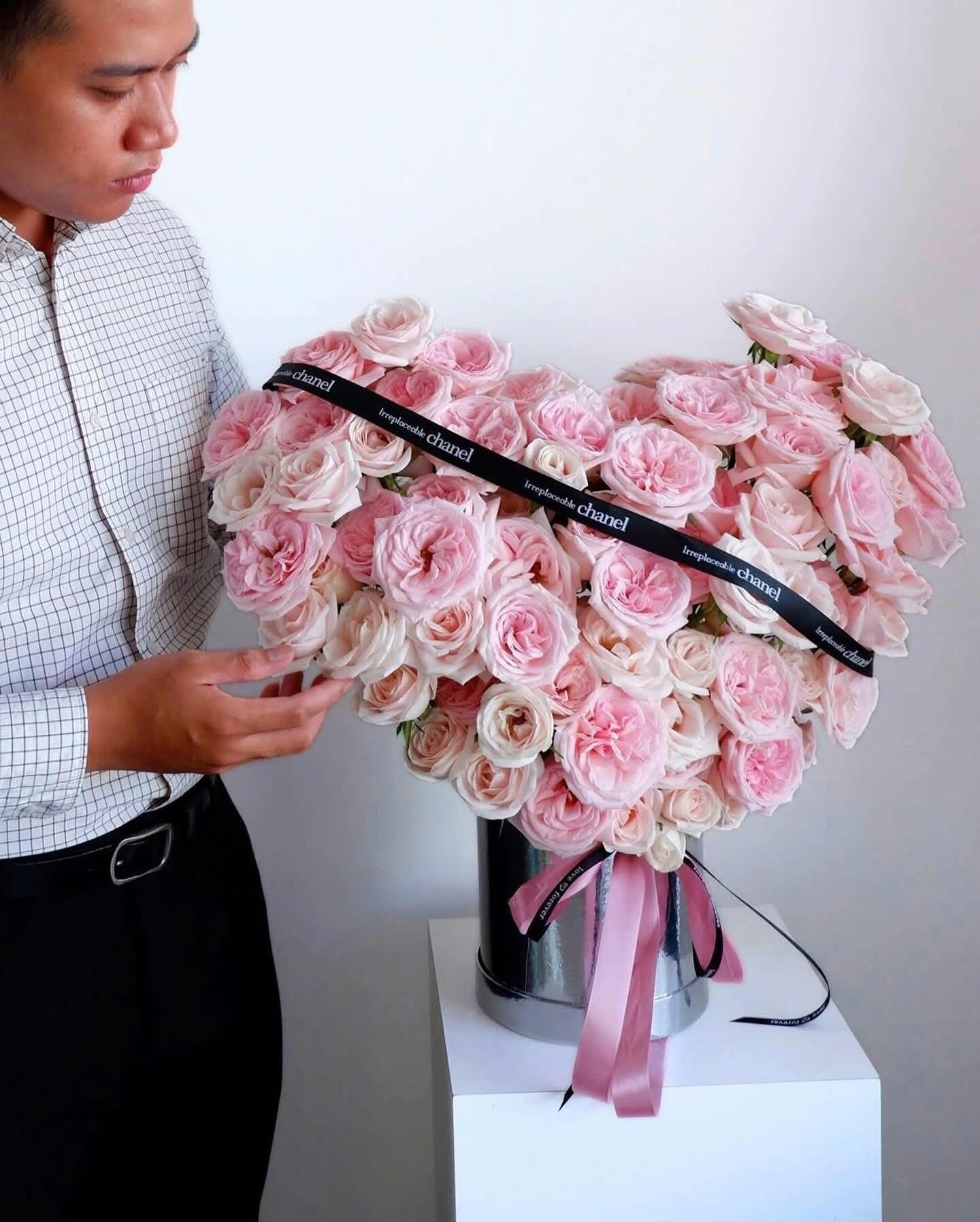 Lãng hoa hồng màu pastel mang dáng trái tim mềm mại, được phối hoa dày dặn và tinh tế, tạo nên tổng thể vừa lãng mạn vừa sang trọng. Sắc hồng pastel dịu nhẹ hòa quyện cùng những lớp cánh hoa xếp khéo léo, gợi cảm giác yêu thương trọn vẹn và nâng niu. Thiết kế hiện đại với hộp hoa ánh kim và ruy băng nhấn nhá giúp giỏ hoa trở thành điểm nhấn ấn tượng trong mọi không gian.